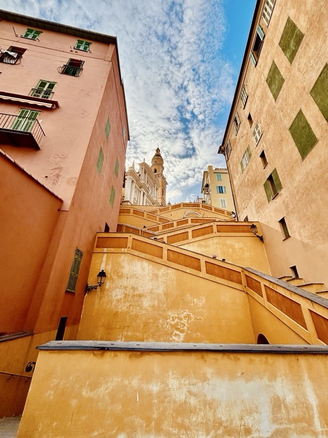 Basilique Saint-Michel Archange de Menton is at the top of the stairs.